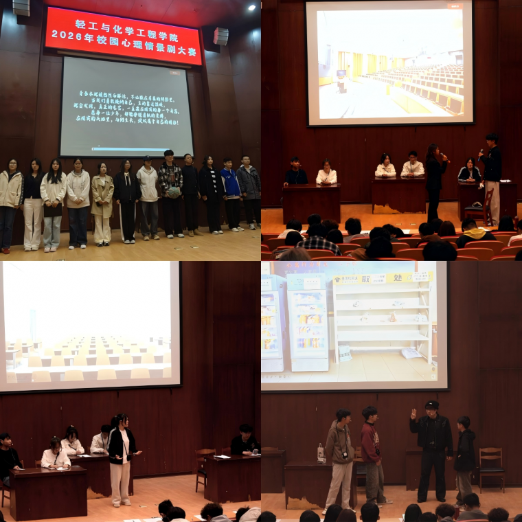 为加强大学生心理健康教育,引导学生关爱自我、接纳自我、悦纳他人,营造温暖和谐、积极向上的校园氛围,4月8日,轻工与化学工程学院“心向暖阳 与爱同行”——校园心理情景剧大赛在图书馆报告厅顺利举办。本次比赛吸引全院2025级本科6个专业共12支队伍同台竞技,学院师生代表齐聚现场,共同观看展演,感受心灵力量。